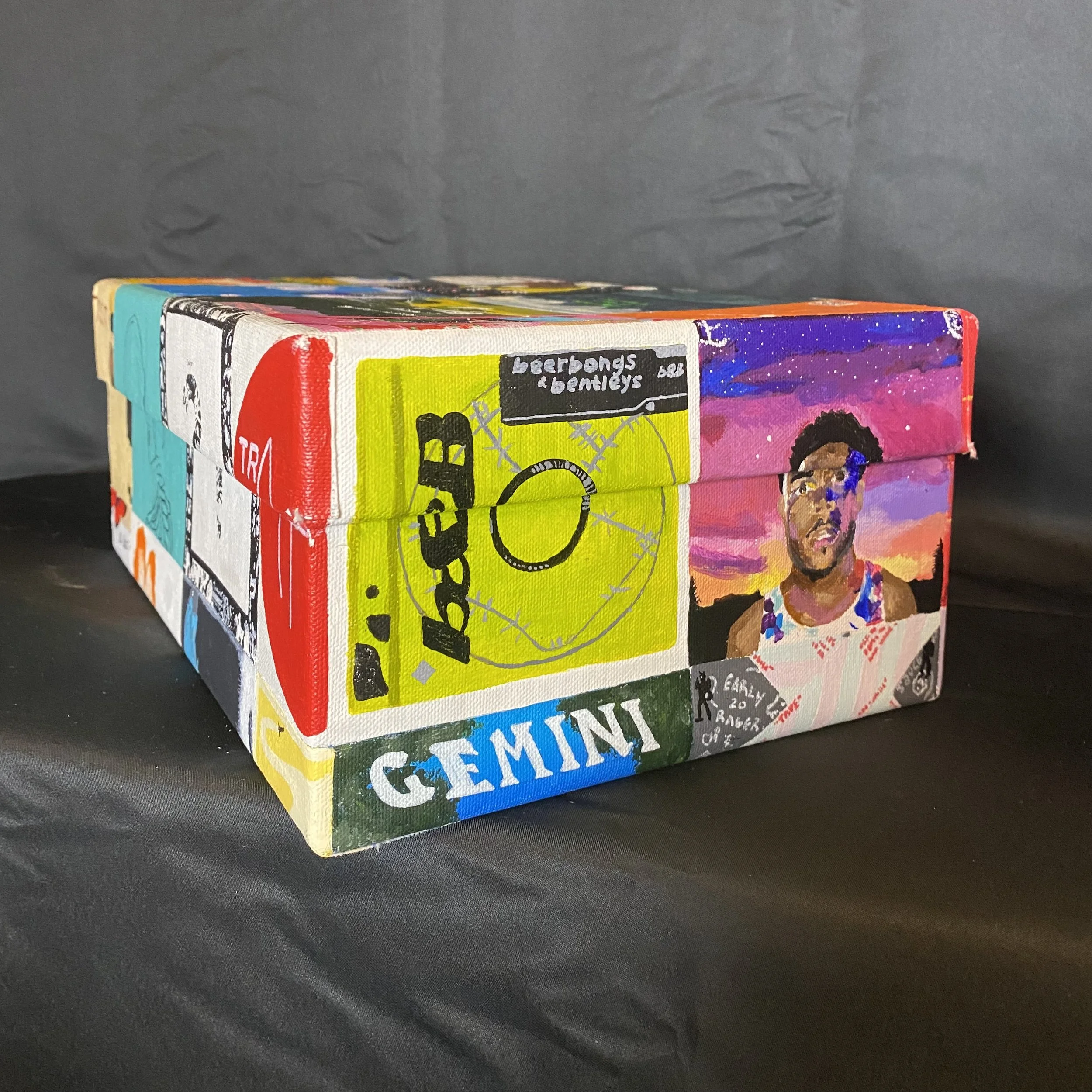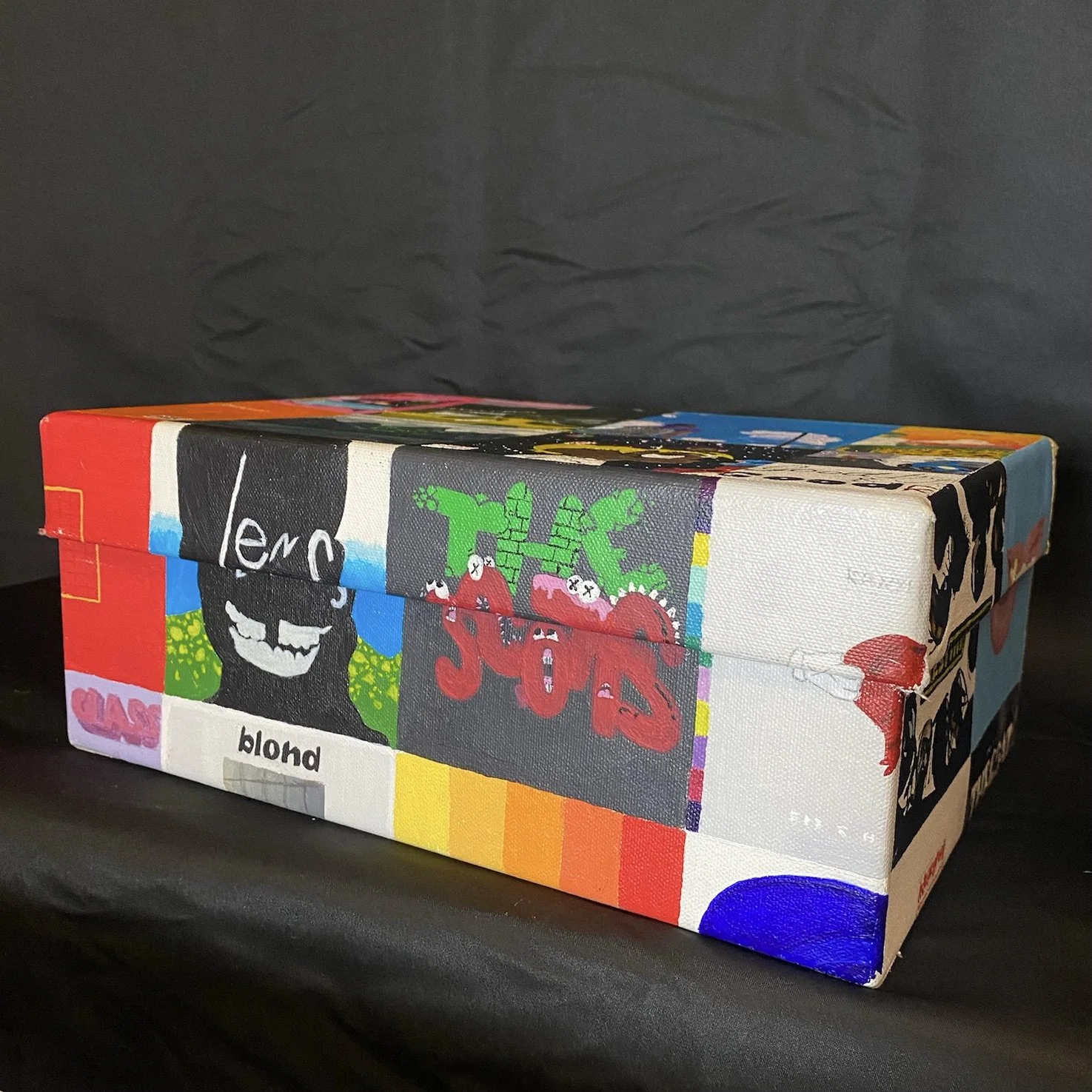 Memory box covered in music albums (painted with acrylic paint)